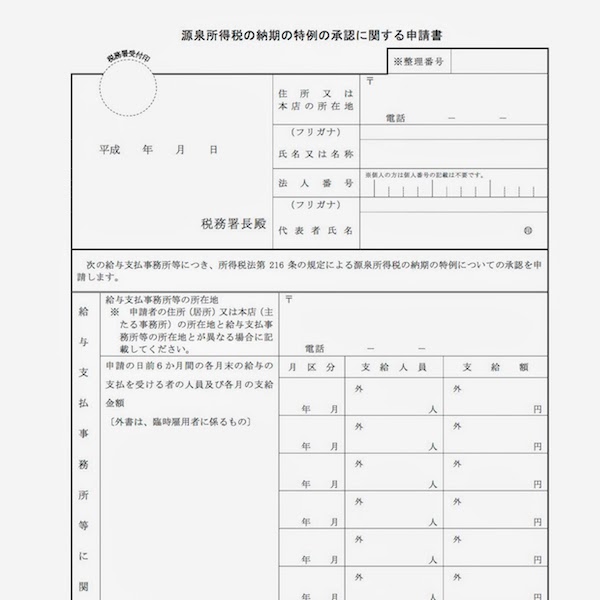 「源泉所得税の納期の特例」の申請をしている事業者であれば、税理士や司法書士などの士業に対する報酬については、給料の源泉所得税と同様、7/10と1/20の納付期限となります。